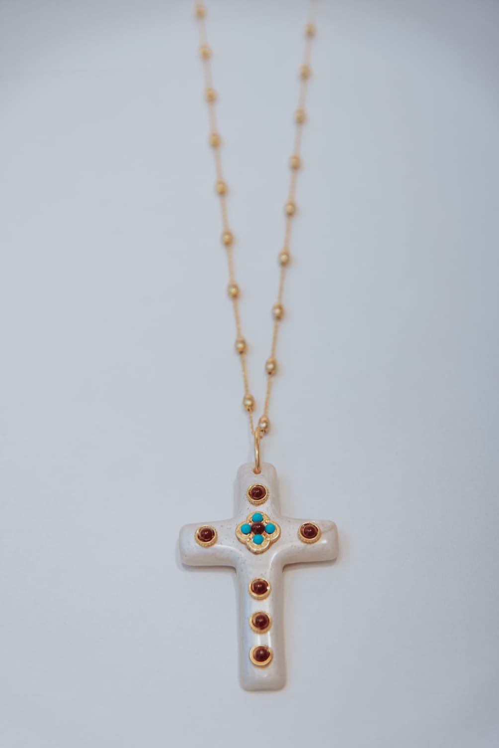 Colar Cruz Corrente Detalhada Bolinha