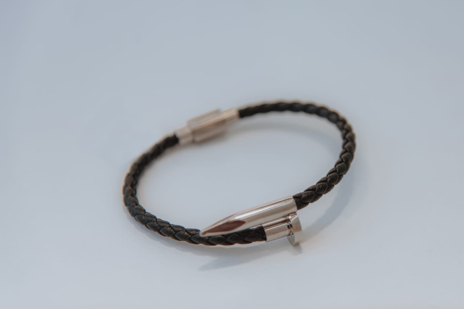 Pulseira Bracelete Couro Trançado e Prego